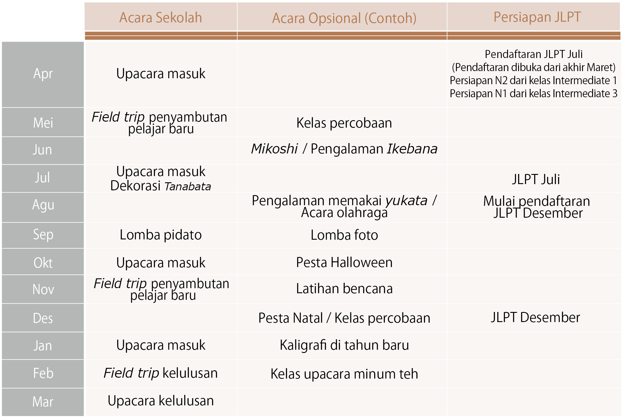 Jadwal Tahunan | Jika ingin belajar bahasa Jepang di Tokyo (Nippori), pilihlah Sekolah Bahasa Jepang Akamonkai!