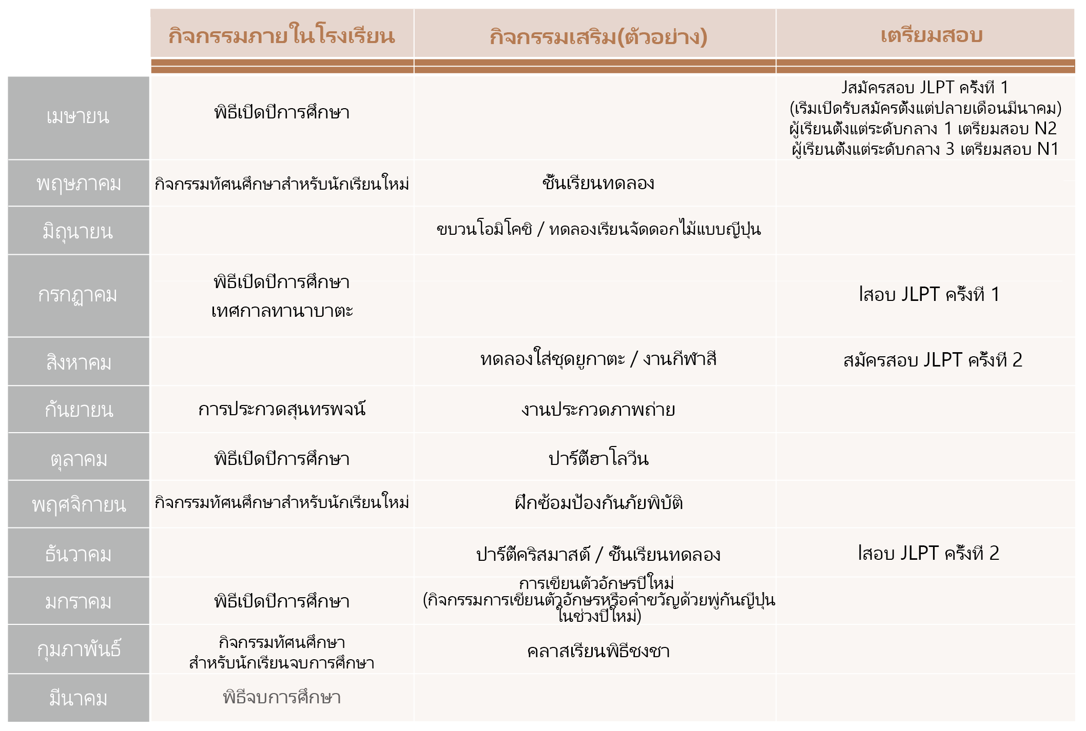 ตารางเวลาประจำปี | หากคุณกำลังมองหาโรงเรียนสอนภาษาญี่ปุ่นในโตเกียว (นิปโปริ) เราขอแนะนำโรงเรียนสอนภาษาญี่ปุ่นอะคะมงไค