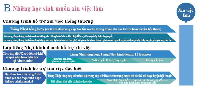 ※Vui lòng tham khảo tại đây để biết thêm chi tiết chương trình giảng dạy dành cho lớp hỗ trợ xin việc.