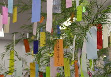 Bamboo grass for the Star Festival was decoreated in akamonkai. We hope that the wishes for the future on the slips of paper come true.